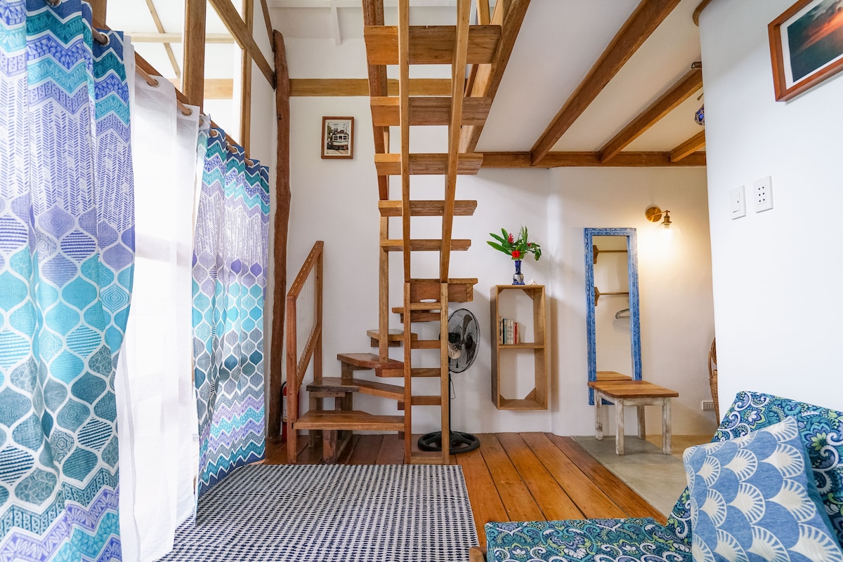 Acorde com palmeiras, brisa do oceano e canto dos pássaros... BAYAY TAMSI é uma vila no topo de uma colina; aconchegante e ousada no estilo Filipino Tropic Mod. Uma escapada privada eclética, a apenas 3 minutos do centro da cidade. A casa tem 2 quartos; flexível para aqueles interessados em uma experiência única. Desfrute da piscina privativa, varanda espaçosa e vistas exuberantes para a selva — perfeitas para casais, amigos, famílias e pequenos eventos. OBSERVAÇÃO: são 100 degraus acima da colina para privacidade e vistas deslumbrantes. Vamos ajudar com a bagagem!