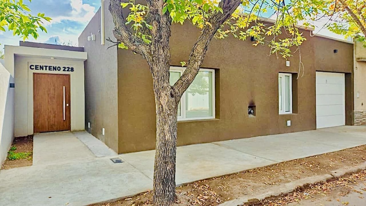 Casa de campo moderna e confortável em um hectare de terreno com vistas excepcionais para as florestas de Calden. Localizado a apenas 15 minutos de Santa Rosa e a 5 minutos da pista de corrida, é ideal para um fim de semana relaxante ou para fazer um palco no caminho para o sul. Total segurança e tranquilidade. Tem uma cama de casal, uma cama de marinheiro e um sofá-cama de casal. Cozinha moderna totalmente equipada e grelha coberta. Dois cômodos muito espaçosos com AC. Design bioclimático e Internet Starlink.