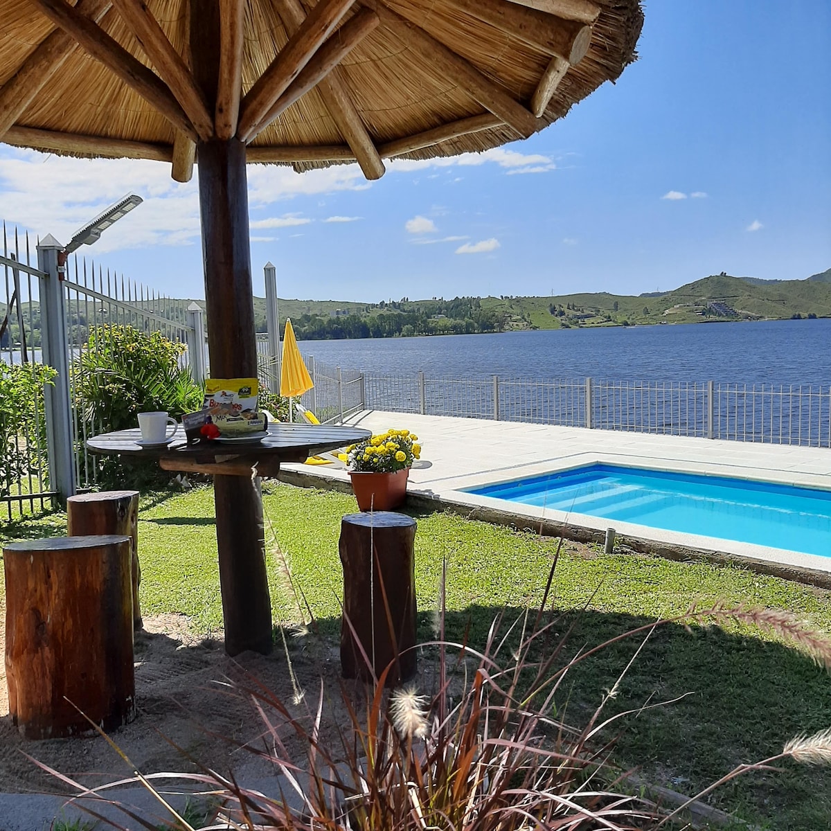 Cabana encantadora a poucos passos do Reservatório do Rio Tercero. O pôr do sol no lago visto do nosso jardim da frente é um luxo que queríamos compartilhar. A cabana está localizada dentro de um clube familiar, ao lado de outras cabanas rústicas em estilo de bairro. A propriedade está localizada em frente ao Reservatório Río Tercero, perfeito para desfrutar da tranquilidade das montanhas. O lugar é muito tranquilo, e para sua tranquilidade há uma câmera que só filma a entrada.