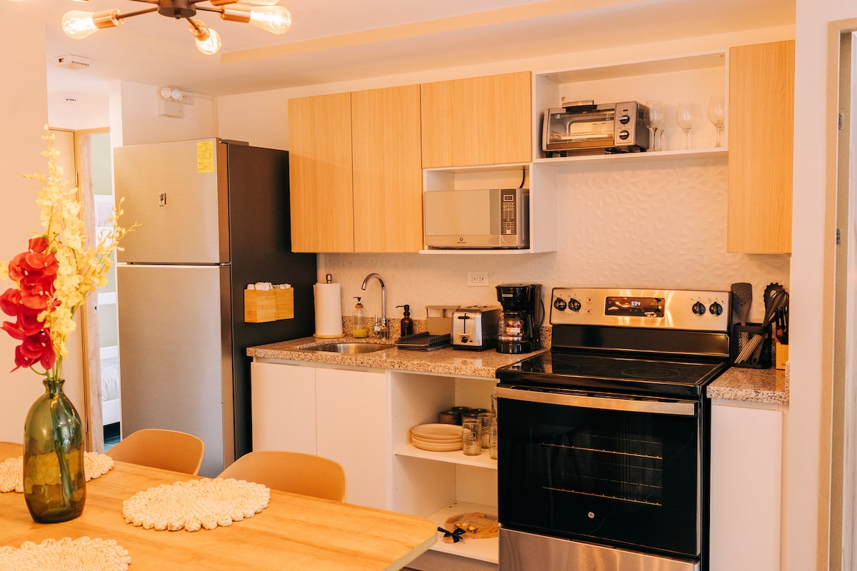 Desfrute deste belo, confortável e central apartamento de 2 quartos com um estilo minimalista; localizado em Santa Tecla, numa das áreas mais exclusivas do país. Perto de shoppings, restaurantes, farmácias e supermercados. Este apartamento é ideal para até 3 pessoas e inclui 1 estacionamento interno, acesso a trilhas para caminhadas, parque e academia na interperie. Temos internet de 100 Mbps ideal para Home Office, Smart TV com Netflix, máquina de lavar e secar roupa.