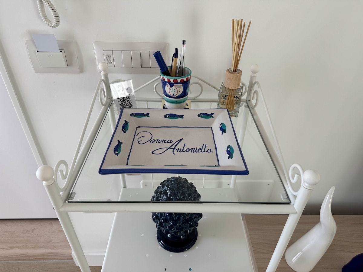 O belo apartamento foi completamente renovado em 2021. O apartamento está localizado no segundo andar de um edifício antigo sem elevador. O apartamento é decorado com bom gosto em estilo mediterrâneo,e inclui uma área de estar com cama de casal, mesa de mármore de cozinha completa e 4 cadeiras,guardarobe grande, 1 televisão e está equipado com todos os confortos e serviços, aquecimento e ar condicionado,internet wifi.O apartamento com vista para o mar com vistas deslumbrantes para a Península de Sorrento