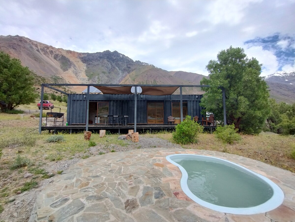 Casa pequena no topo da montanha para até 6 pessoas. Refúgio confortável e equipado com vista panorâmica para as montanhas, geleiras e paisagens incríveis. Descanso único e desconexão cercada pela natureza, as instalações permitirão que você passe alguns dias admirando as vistas gratuitas da montanha. Tem uma piscina privativa para uso gratuito de novembro a março e uma banheira de hidromassagem privativa (CUSTO EXTRA, 45 mil CLP OU 48 DÓLARES) para olhar as estrelas ao pôr do sol.