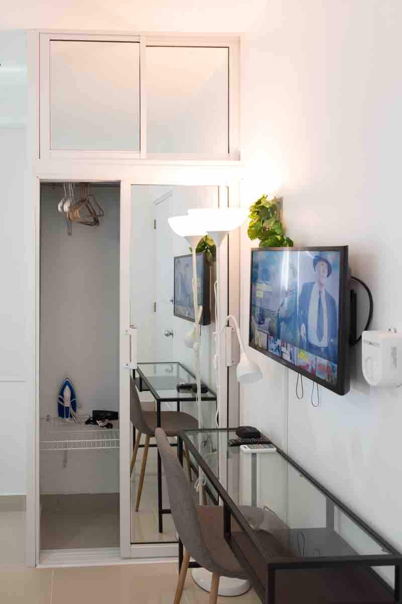 Sem taxas extras, Wi-Fi gratuito e Netflix incluídos. Quarto privativo que tem uma cozinha pequena, banheiro privativo, ar condicionado e um terraço aconchegante do lado de fora da porta, onde você pode desfrutar de um belo pôr do sol, tomar sol ou sentir o ar fresco da noite. Está localizado em um setor tranquilo e seguro, nas proximidades você encontrará dois bares e restaurantes, se você quiser passar algum tempo ou tomar uma bebida. A 3 minutos de distância está a Praça um restaurante aberto 24 horas por dia com um menu variado