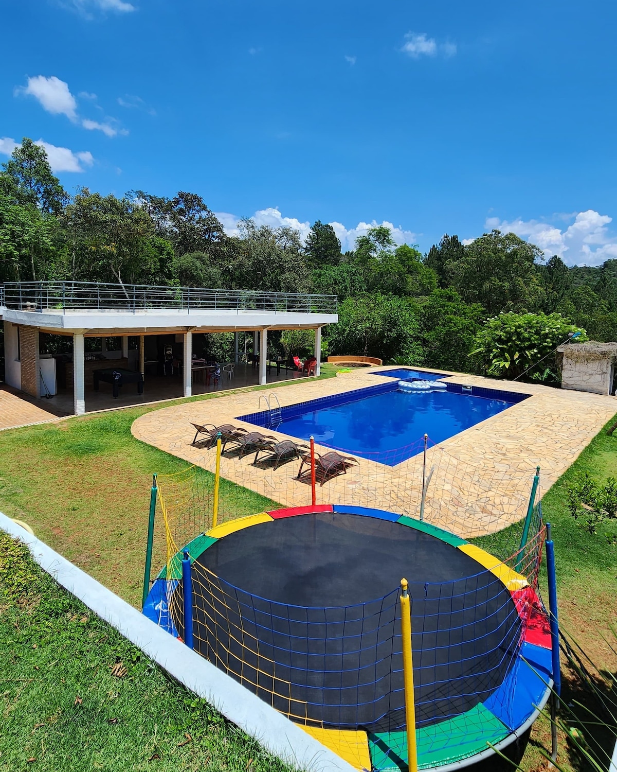 Sejam bem-vindos ao nosso Sítio! 🌿 Ambiente tranquilo e aconchegante, ideal para momentos especiais com amigos e família. Em nosso sítio oferecemos: ✅️Piscina Grande 72 m² + infantil 🏊♂️ ✅️Mesa de Bilhar 🎱 ✅️Cama elástica (cortesia) 🦘 ✅️karaokê (cortesia) 🎤 ✅️Local para fogueira 🔥 ✅️Área gourmet (Churrasqueira, freezer, mesas e cadeiras) 🍻 👨👩👦👦 Até 25 hóspedes sem cobrança adicional. ⚽️ Futebol de sabão *Inflável alugado à parte com parceiro
