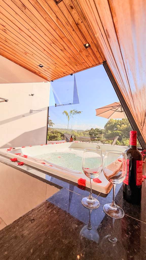 A Estância Cury inaugura seu chalé no melhor estilo romântico para compartilhar com seu amor ou mesmo para dois casais. Adequando a arquitetura do chalé suiço ao nosso clima, relevo e vegetação, conviva com a natureza e a modernidade de um local completo para aproveitar cada segundo. Seja em nosso ofurô espaçoso para até 8 pessoas, na lareira externa, fazendo um churrasco, um jantar romântico ou assistindo um streaming disponível em nossa TV de 60 Polegadas, cada segundo será lembrado.