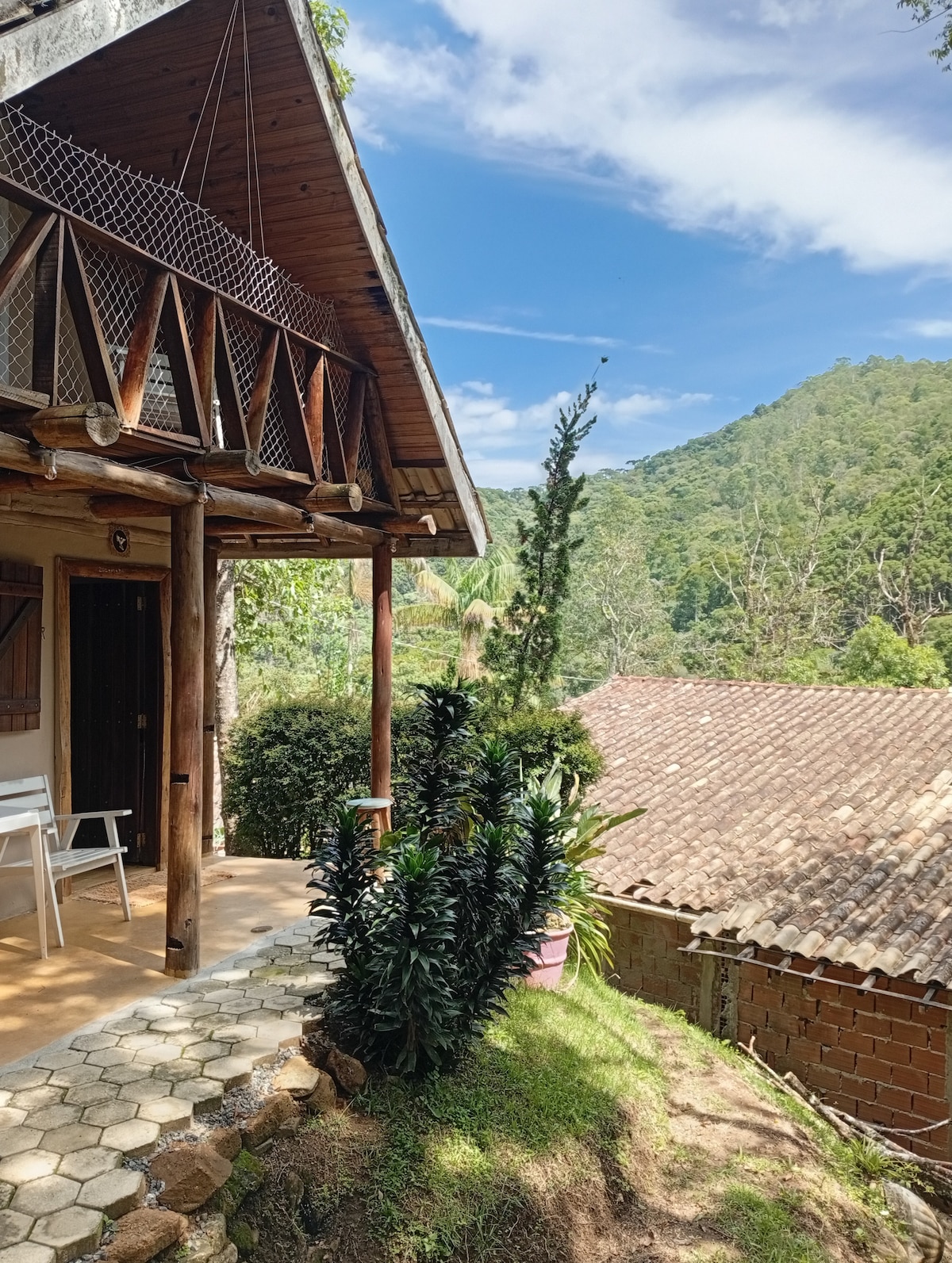 Charme, conforto e muito verde. Ofurô com vista.