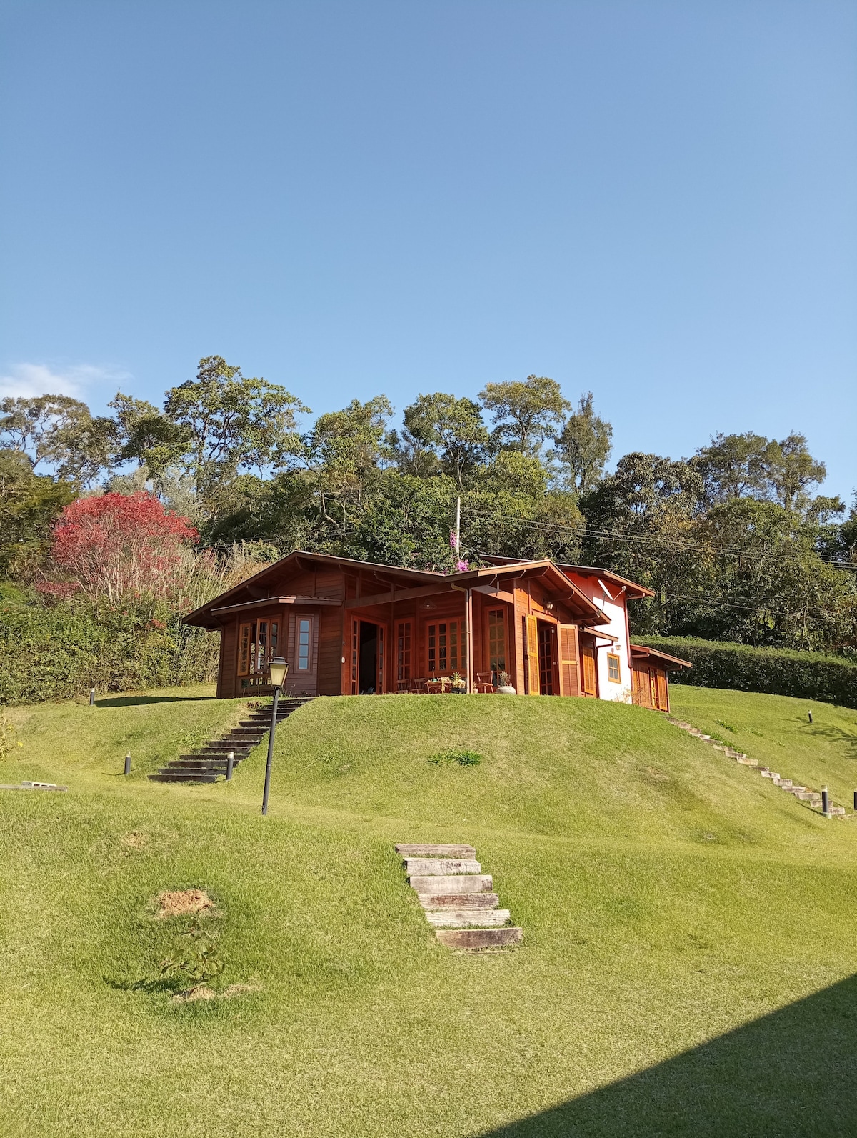 Para quem busca um espaço aconchegante, onde a paz e a tranquilidade fazem morada, chalé americano, possui SALA com LAREIRA, equipada com TV LED, e cama de casal. Possui também COZINHA toda equipada. É compacto, muito aconchegante e romântico, com deck exclusivo com vista espetacular para as montanhas INESQUECÍVEL! espaço pra você descansar em contato com a natureza, onde o ar é puro, as nuvens passeiam por entre o chalé com todo o seu esplendor.