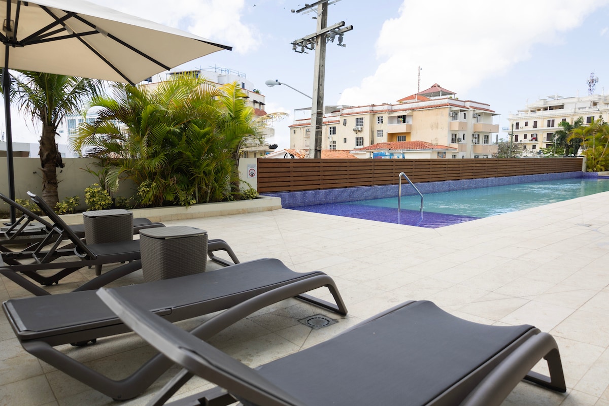 Desfrute de uma experiência de luxo neste alojamento central em um dos bairros mais seguros e acolhedores de Santo Domingo, com muito para oferecer nas proximidades, bares, restaurantes, shoppings, supermercados, farmácias, a poucos metros de distância. Apartamento totalmente equipado, em um edifício moderno, em um nível 10, onde você pode desfrutar de vistas espetaculares. Área comum deslumbrante, no 12º andar, piscina de borda infinita, academia, cinema, churrasqueira Segurança 24 horas, 7 dias por semana e vaga de garagem própria