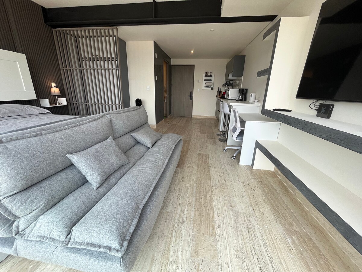 Loft com jacuzzi, academia e espaço de coworking. Perto de Polanco