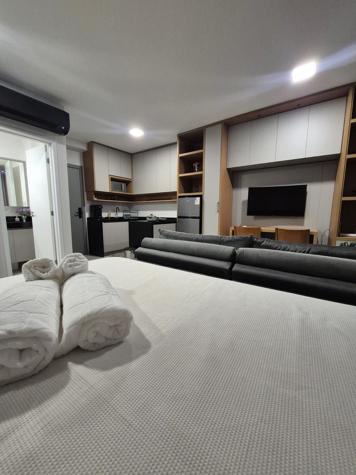 Meu apartamento foi pensado com carinho para receber hóspedes que valorizam conforto, praticidade e estilo. Ele é moderno, bem iluminado, tem decoração aconchegante e está localizado em uma área segura e conveniente. Cama super confortável com roupas de cama de qualidade. Wi-Fi rápido para quem trabalha ou quer relaxar assistindo algo. Check-in fácil e flexível. Meu objetivo é que você tenha uma estadia tranquila, prática e cheia de boas memórias! No pets.