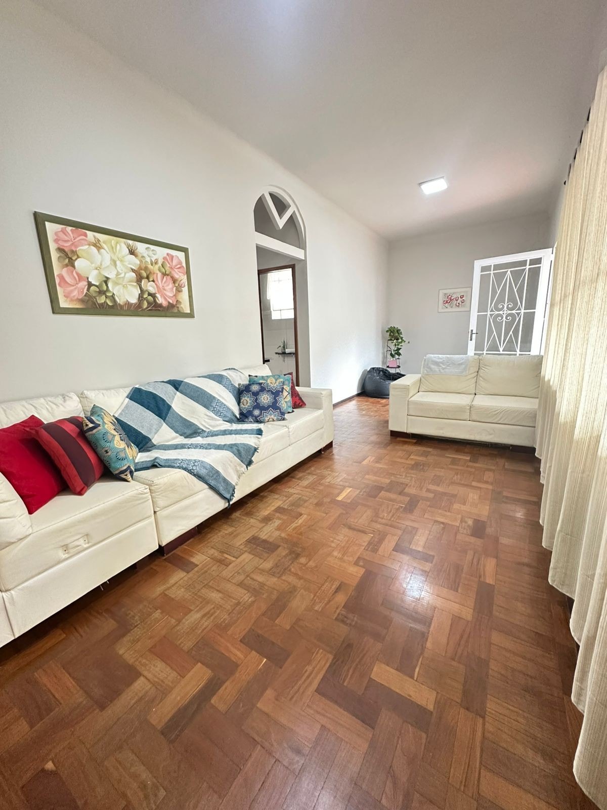São 74 m2 cheios de história e charme! Espaçosa, bem iluminada e arejada! O acesso é pela garagem coberta. Na frente da casa está uma varanda com espaço para rede. A porta de entrada dá acesso a um amplo espaço integrado com sala de estar e TV, refeições e cozinha. O acesso à suíte se faz pelo hall/mini closet que também dá acesso ao banheiro, também muito amplo e iluminado.