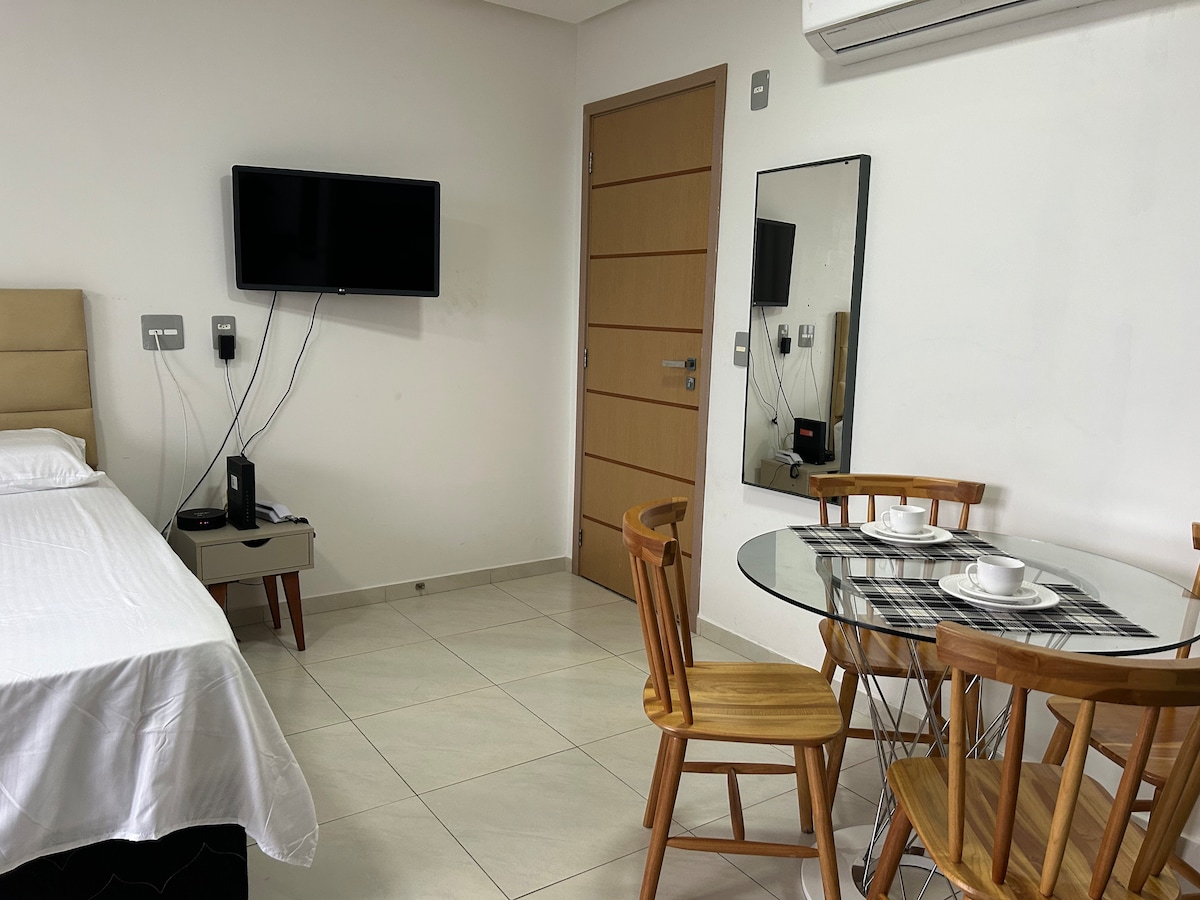 Moderno, confortável e bem localizado, o Studio no Calhau é perfeito para quem busca praticidade e bem-estar em São Luís. Com decoração elegante, cozinha equipada, cama aconchegante, Wi-Fi e ar-condicionado, o espaço oferece tudo para uma estadia completa. Próximo a praias, shoppings e restaurantes, é o lugar ideal para relaxar e aproveitar o melhor da cidade.
