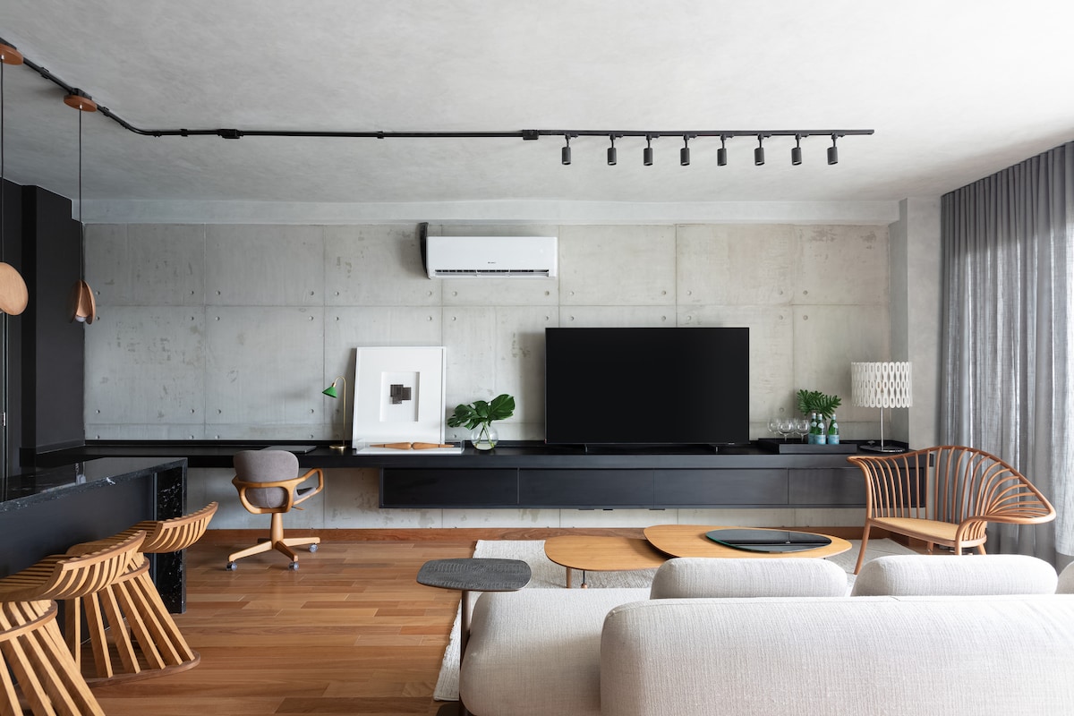 Novo apartamento ultra moderno de 2023 nos Jardins "Alexa Wifi 6 Smart Home" com ar-condicionado, academia e piscina. A um quarteirão da Avenida Paulista, no Jardim Paulista. Espaço contemporâneo leve e bem projetado tem 2 paredes de janelas. Caminhe até centenas de restaurantes, cafés, farmácia, mercearia, metrô, shoppings e mercados de agricultores. Central para os melhores hospitais e os melhores médicos. Planta aberta de design americano, 4 TVs, 2 estacionamentos gratuitos, lençóis e toalhas Trussardi. Extremamente pacífico. 145 m². Veja o vídeo@Lina_Jardim_Paulista