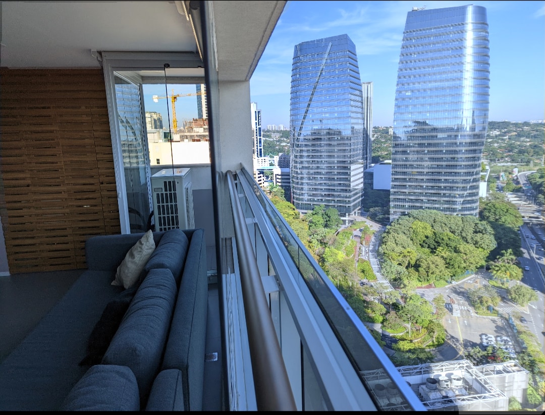 Experience the brand-new feel of One Eleven in the heart of Vila Olimpia. This modern apartment features large, wide-opening windows that frame a breathtaking city view and flood the space with natural light. The bedroom is designed for ultimate comfort—extremely quiet and perfectly dark for a restful night's sleep. Impeccably maintained with a clean aesthetic, you’ll be walking distance to top restaurants and business hubs, enjoying a safe, upscale retreat with a stunning urban backdrop.