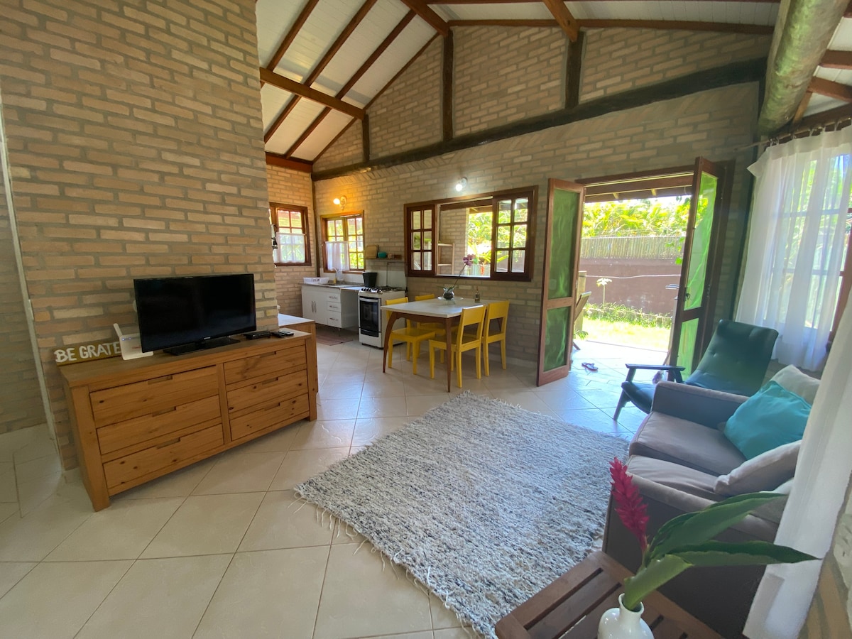 Confortável e segura a casa de praia recebe muita luz natural, é arejada com constante renovação de ar por todos os ambientes. Contando com uma vista incrível para o mar e situada na mesma avenida das praias do sul da ilha, rampa de fácil acesso, rodeada por muita natureza, nossa casa tem decoração praiana, móveis e utensílios novos. Próxima das praias: Praia das Conchas 300m Praia do Veloso 1.300m Praia do Curral 1.500m