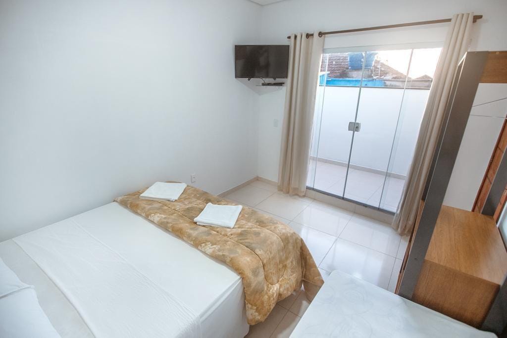 Aconchegante suíte no 3º andar, ideal para quem busca conforto e praticidade. O espaço é compacto, mas bem planejado, oferecendo o essencial para uma estadia tranquila. O destaque é a varanda com vista incrível para o pôr do sol, perfeita para relaxar, além da churrasqueira que torna o ambiente ainda mais especial. Acomoda até 4 pessoas, com uma cama de casal e um beliche, banheiro privativo e cozinha equipada. Cozinha completa , churrasqueira ,Tv. Vista pro por do sol ☀️