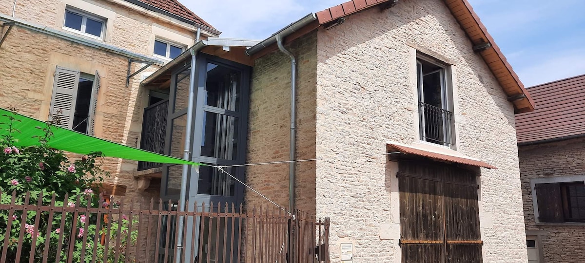 Para uma noite ou uma estadia, damos as boas-vindas a esta pequena casa de vinicultores, seu carro estará estacionado no pátio fechado e seguro, bicicletas e motocicletas locais. Sala de estar-cozinha com sofá-cama, quarto, banheiro com chuveiro, você estará totalmente independente dentro da nossa propriedade localizada em uma pequena aldeia típica de pedra rosa, perto de TOURNUS e no coração da Borgonha. Chá, café, chocolate disponível na acomodação, dispensador de pão e doces a 150m de distância.