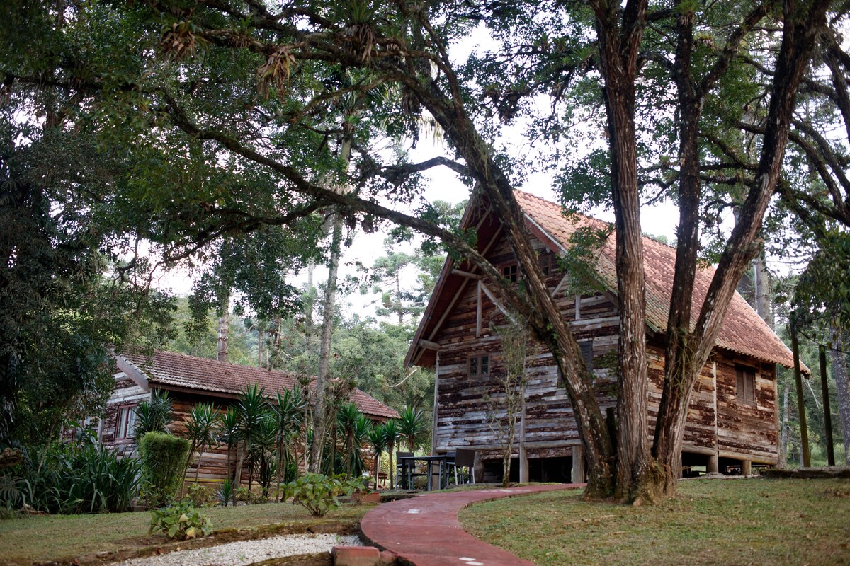 Todo de madeira, com um quarto de casal embaixo e duas camas de solteiro no mezanino superior. A quem diga que ele lembra os contos infantis do tipo "três ursinhos" ou refugio de uma aventura romântica na montanha.