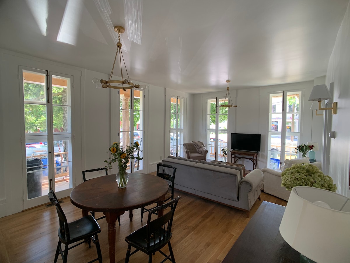 Bem-vindo ao The Farmhouse no 10 Park Place - Um apartamento exclusivo de 1 quarto no primeiro andar. Este apartamento recebeu o tratamento completo: tudo novo! Sente-se e relaxe em frente à lareira enquanto desfruta da TV smart de 55 polegadas ou de um bom livro. Uma cozinha completa permite que os hóspedes façam uma refeição completa e a mesa de jantar com 4 lugares permite que os hóspedes se sentem para apreciá-la. O sofá-chaise converte-se em uma cama completa para uma 2ª área de dormir. Todas as comodidades do centro da cidade estão a uma curta distância a pé.