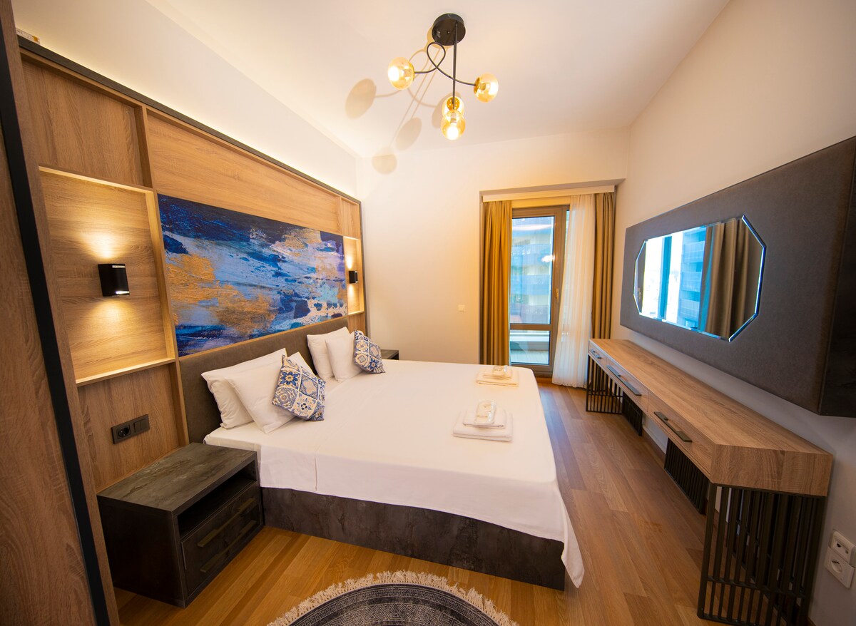 Bem-vindo ao nosso magnífico apartamento de 1 quarto que oferece uma experiência de acomodação acolhedora e confortável em unidades espaçosas com vista para a floresta, bem no coração do centro financeiro e comercial de Istambul. Este apartamento está equipado com tecnologia de ponta e design contemporâneo, e fica a poucos minutos do Vadistanbul e do Vadistanbul Mall, a área mais prestigiada da cidade.