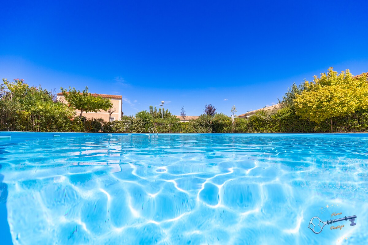 Apartamento luminoso composto por um grande quarto com cama de casal (colchão novo, de fevereiro de 2024) separado de uma grande sala de estar com um grande sofá marroquino (veja a foto, grande o suficiente para 3 pessoas) que pode servir de cama para 2 pessoas graças ao seu sobre-colchão muito confortável (fevereiro de 2024), uma smart TV, uma cafeteira e uma máquina de lavar louça. Grande mesa para 8 pessoas. Localizado em frente a uma piscina, com grama sintética e espreguiçadeiras sombreadas