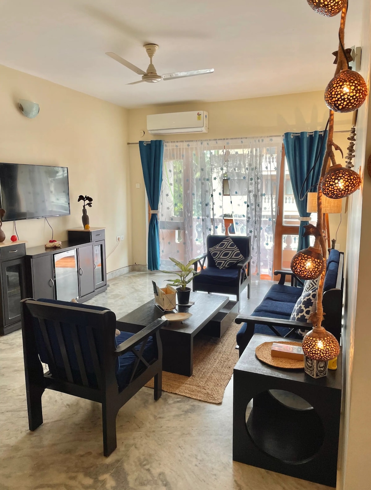 💡A 12 minutos a pé da praia de Zalor 💡 Apartamento espaçoso e arejado (135 m²) 💡2º andar do prédio (sem elevador) 💡2 quartos, um com vista para o arrozal de Goa 💡3 varandas 💡2 banheiros 💡Cozinha totalmente funcional 💡Wi-Fi, inversor e estacionamento Entrega 💡em casa de frutas, legumes e itens de mercearia disponíveis 💡Entrega de comida disponível pelo Zomato e pelo Swiggy Aluguel 💡de bicicletas, carros e bicicletas disponível 💡Condomínio fechado 💡Vaga de garagem vigiada 💡Gerenciado por “Superhost”