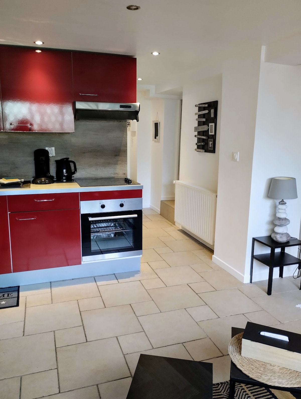 Estúdio sob nosso pavilhão, acesso completamente independente. Você tem um guarda-roupa, cabides e prateleiras. Banheiro separado com box, pia, armazenamento, secador de cabelo, toalhas, máquina de lavar roupa com rack de secagem. cozinha americana com geladeira, fogão, forno, micro-ondas, cafeteira Senseo, chaleira, torradeira, utensílios de cozinha necessários para preparar refeições. 1 cama de casal + sofá-cama, roupa de cama fornecida. TV, acesso Wi-Fi.