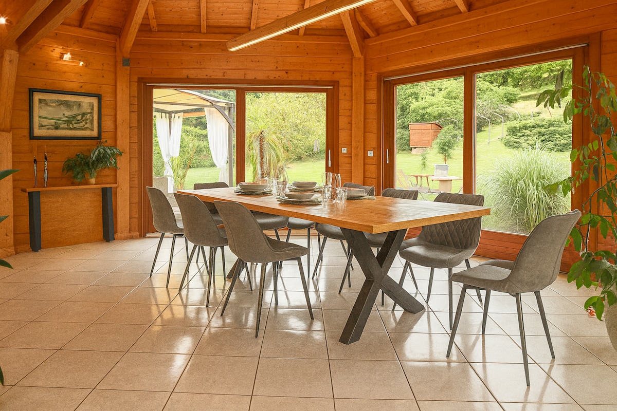 La villa, construite en 2024 à la Combe de Lancey entre Chambéry et Grenoble, offre une vue splendide sur les montagnes et la Dent de Crolles. Elle dispose d'une piscine intérieure privée, d'un jacuzzi et d'un sauna pour des moments de détente dans une ambiance zen. La décoration intérieure, d'inspiration japonaise, ajoute une touche d'élégance. Avec ses grandes baies vitrées et son cadre naturel magnifique, cette villa est parfaite pour les familles ou amis en quête de confort et de sérénité.