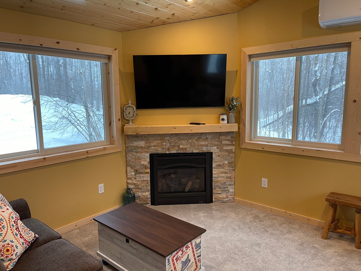 Esta cabana moderna está localizada a 390 pés do belo rio Kettle. O rio é bem conhecido por suas ótimas águas, canoagem e caiaque. Há uma lareira a gás, banheira de hidromassagem e Wi-Fi. A banheira de hidromassagem mais nova pode acomodar 6 pessoas. Grande deck expansivo com assentos. Fogueira e uma grande churrasqueira a gás. O chalé é moderno e muito confortável. Os lençóis são da Pottery Barn e os utensílios de cozinha são da Kitchen Aid! Máquinas de lavar e secar. Sete hectares de floresta com alimentadores de veados e pássaros para a vida selvagem. Esta cabana é incrível!!
