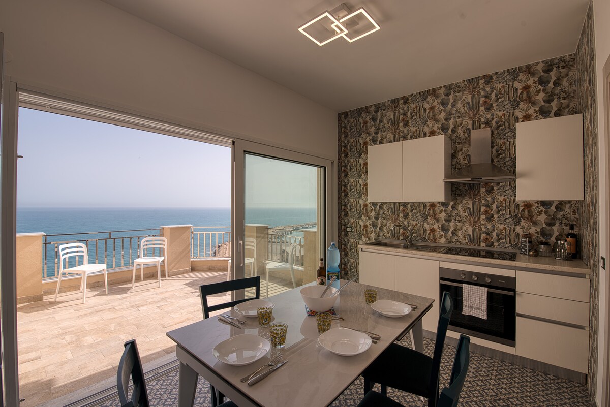Completely renovated in 2022, our apartment in Studio Estate seamlessly marries modern elegance with historic charm. The real jewel in our property's crown is the stunning penthouse-like terrace. With an awe-inspiring sea view, it's the perfect spot for morning espressos, sunset aperitifs, and starlit dinners. Located in Sciacca's vibrant historic centre, you'll find yourself steps away from the town’s quaint boutiques, traditional restaurants, and beautiful architecture.