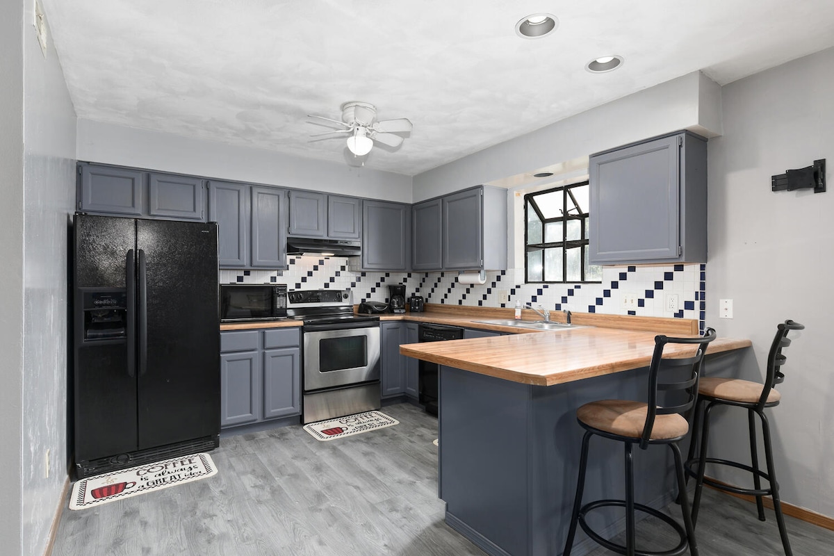 Relaxe neste duplex recém-renovado a apenas 30 minutos de St. Louis. Perfeito para enfermeiros de viagem, famílias militares e hóspedes de longa estadia que procuram um lar confortável longe de casa. Localizado perto de 6 grandes hospitais, no centro de St. Louis e na Base da Força Aérea Scott. Modernizado por toda parte, Wi-Fi rápido, café-bar, máquina de lavar/secar e dois quartos com smart TVs. Ainda não está pronto para reservar? Adicione este anúncio aos seus favoritos. 😊