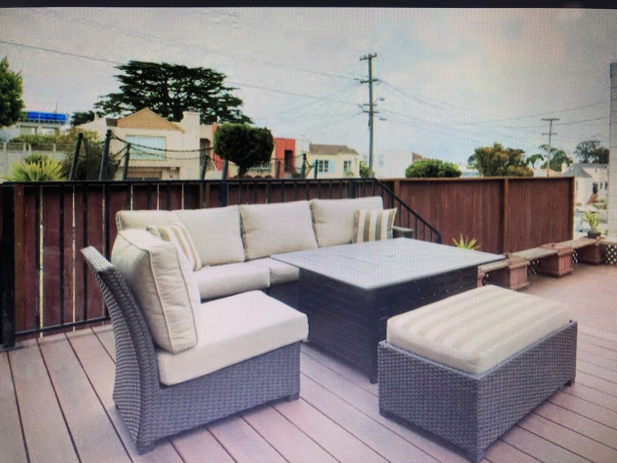 O apartamento tem uma entrada privativa que leva a um grande deck. O espaço inclui um quarto com uma cama tamanho queen, banheiro privativo, a área de estar tem um sofá-cama tamanho queen, uma poltrona conversível de dormir individual e mesa de jantar com 4 lugares. Enorme TV de tela plana com cabo e Wi-Fi de alta velocidade. Estamos a 4 quarteirões do Parque Golden Gate e a 2 quarteirões do Parque Sutro, com vistas espetaculares do Oceano Pacífico. A poucos minutos a pé das trilhas de Lands End, das ruínas de Sutro Baths e até Ocean Beach.