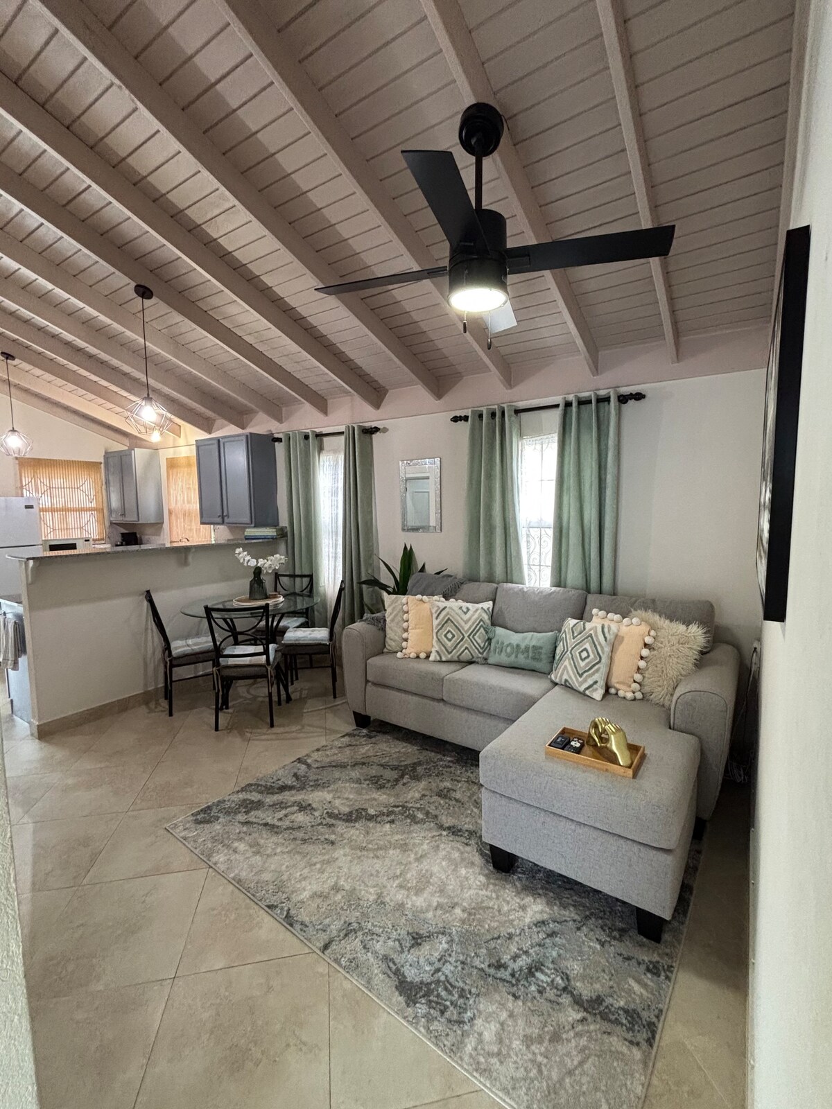 Unidade de estúdio aconchegante no The Lookout, Parishland. Possui banheiro privativo, estação de trabalho, namoradeira, ar condicionado/ventilador, micro-ondas, frigobar, placa de aquecimento e utensílios. Limpo, seguro e silencioso com atendente no local e acesso à lavanderia. A apenas 5 minutos do aeroporto e a menos de 10 minutos de Oistins, lojas e belas praias da costa sul — ideal para trabalho ou relaxamento.