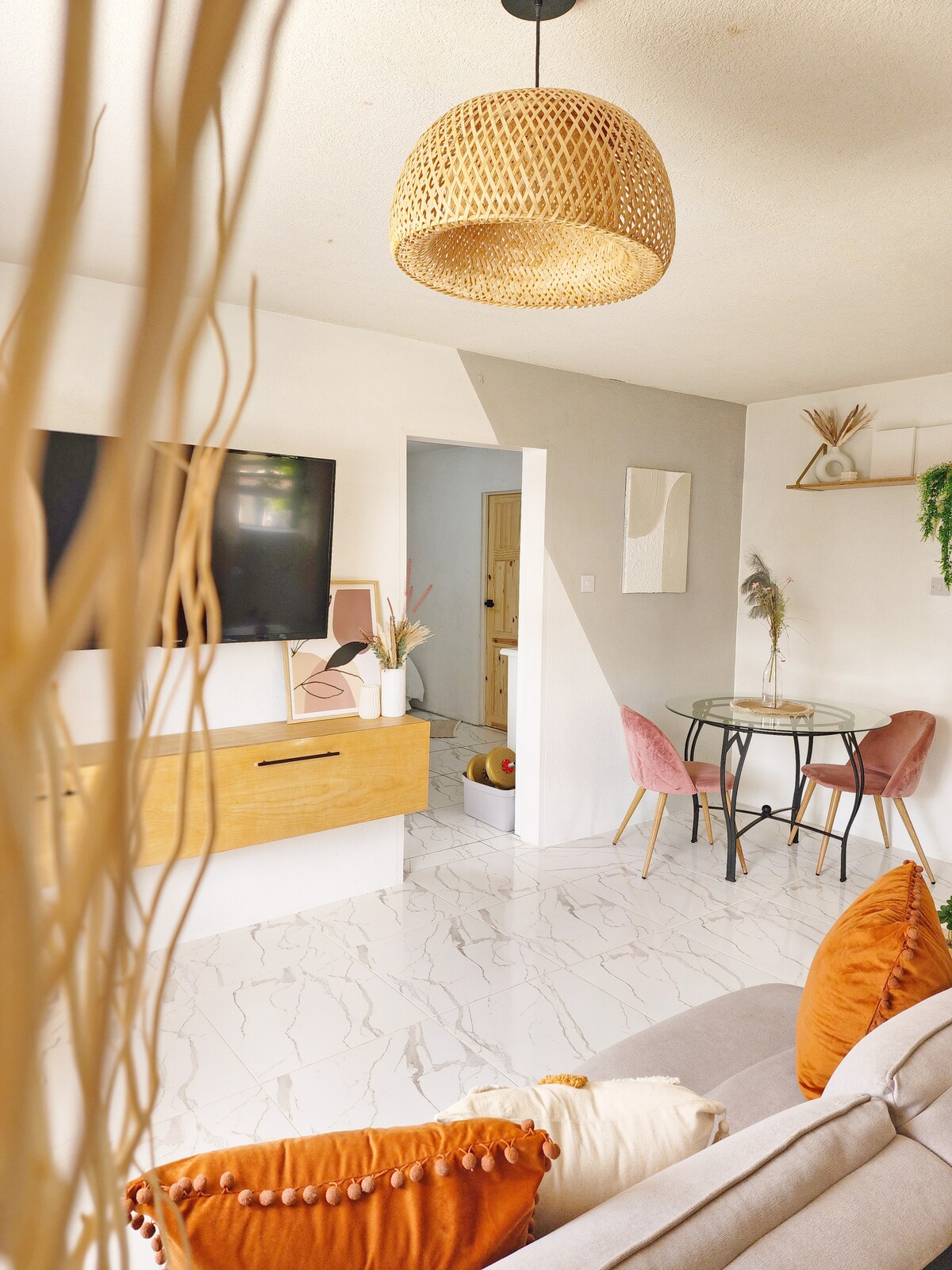 Apartamento completo com sala de estar, quarto, banheiro e cozinha acoplada, ótimo para 1 - 3 hóspedes. Perto do aeroporto, perfeito para estadias curtas ou compromissos da Embaixada dos EUA. Também perto da DHL para vistos canadenses. Se for estudante do Ross... O apto NÃO está localizado nas Aldeias, estamos na comunidade adjacente. Os alunos da Ross podem perguntar sobre estadias de longa duração. Aconselhamos os hóspedes a alugar um veículo, para estadias superiores a 2 dias. O apto NÃO está configurado para animais de estimação, crianças menores de 10 anos ou pessoas com deficiência.