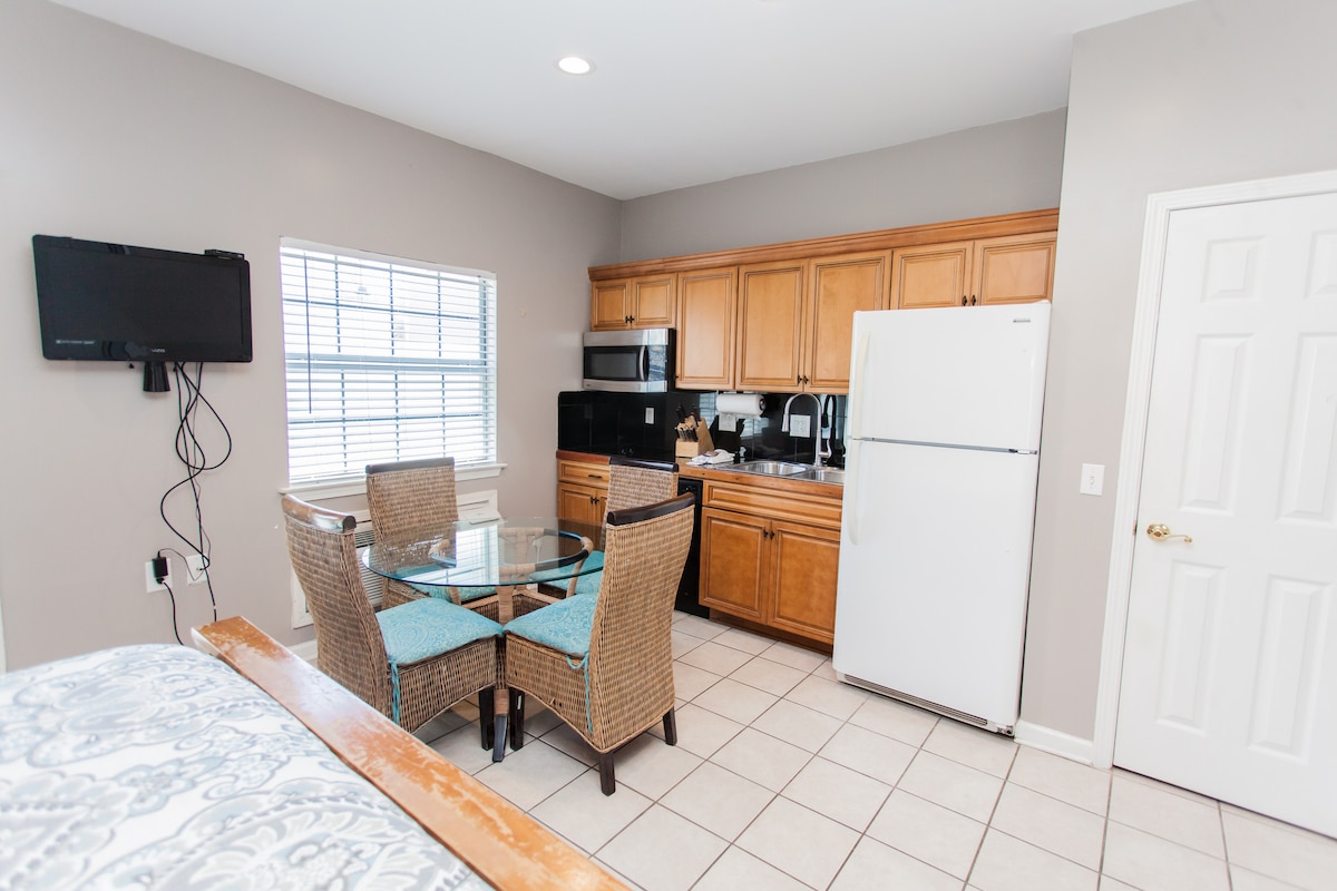 Condomínio de 5 estrelas, elegante, 2 quartos, na Scenic Highway 98, em Destin, com acesso privativo à praia. Esta área familiar dispõe de uma ciclovia, restaurantes nas proximidades e a praia de Destin do outro lado da estrada. Desfrute de comodidades atualizadas, uma cozinha totalmente abastecida, quadras de tênis, pickleball, uma piscina aquecida privativa (sazonal) e uma entrada segura com portão de lança para estacionamento privativo. O quarto principal tem uma cama king size e banheiro privativo, enquanto o segundo quarto oferece uma cama de solteiro e uma cama completa com um banheiro do outro lado do corredor.