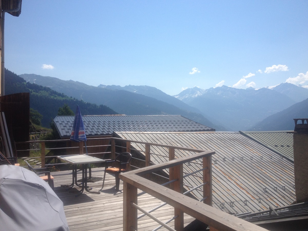 Localizado em uma pequena aldeia e no último andar da nossa casa, este estúdio oferece uma estadia na montanha em paz e serenidade. Você tem um grande espaço para descansar após um dia ativo ou simplesmente aproveitar o ambiente, mas tenha cuidado para não bater a cabeça na viga (1,70 m) Você pode estacionar ao longo da estrada e acessar a casa por um caminho íngreme de 70 metros. Estação a 9 km de ônibus ou carro, com uma vista deslumbrante do vale de Tarentaise.
