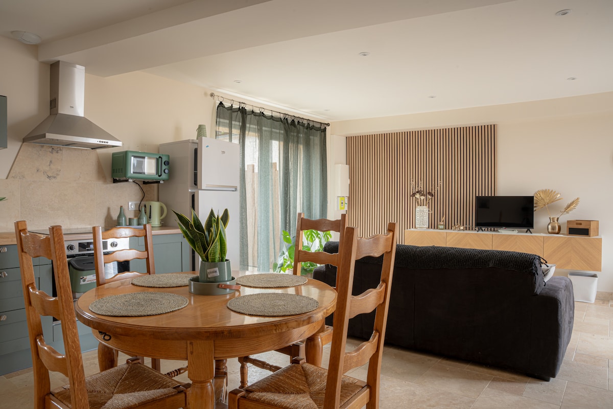 "O ninho dos amantes" é o lugar ideal para casais que procuram relaxamento e tranquilidade. Esta casa de 70 m², totalmente reformada, foi mobiliada e decorada com cores e materiais naturais por uma decoradora viciada. Este casulo aconchegante é o lugar perfeito para se encontrar e passar um bom momento a dois. Os +: jacuzzi, sala de massagem, projetor de vídeo com home theater Belos serviços, decoração cuidadosa e materiais agradáveis, como concreto polido, linho, algodão orgânico...