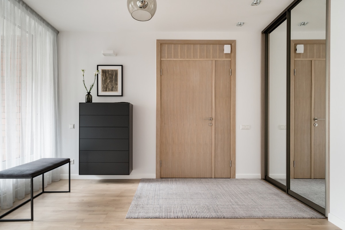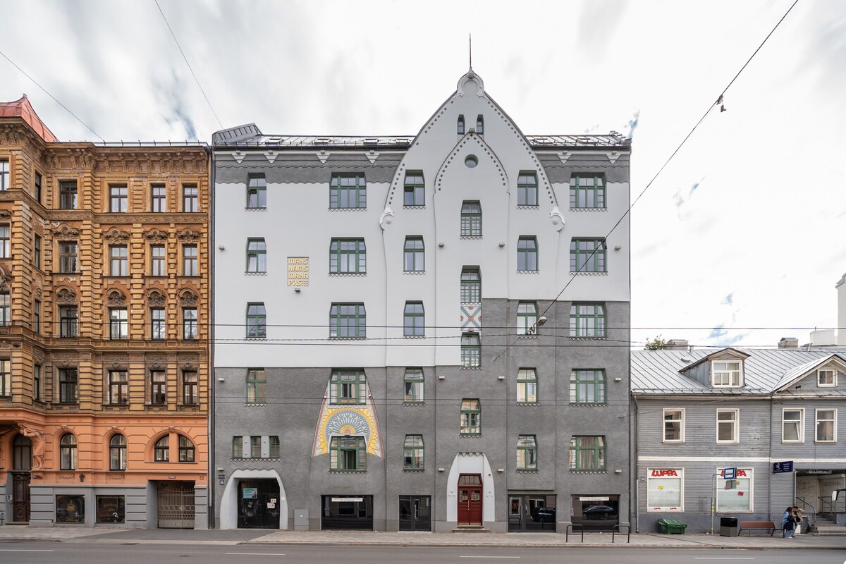Desfrute de uma estadia confortável neste apartamento de um quarto cuidadosamente projetado, situado em um edifício histórico modernista dos anos 1930. Cuidadosamente renovado para preservar seu charme original, o espaço é brilhante, convidativo e enriquecido com obras de arte dos meus artistas letões favoritos. Se você está visitando Riga a trabalho ou a lazer, este apartamento oferece uma base acolhedora e bem equipada — perfeita para viajantes solo, casais ou pais com um bebê.