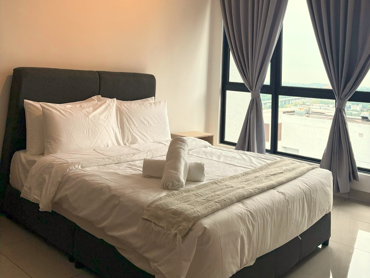 ⚠️ Nov 2025: Nossa piscina está fechada para manutenção. Experimente um sono feliz em camas confortáveis e na privacidade das Acappella Residences. Desfrute de internet de alta velocidade, smart tv, máquina de lavar roupa e uma cozinha totalmente equipada. Você também tem acesso a piscina, academia e parque infantil. Meu espaço tem um tapete de oração e telekung. Tenho o compromisso de manter um alto padrão de limpeza e fornecer sabonete, xampu, condicionador, secador de cabelo, ferro, filtro de água e lanches.