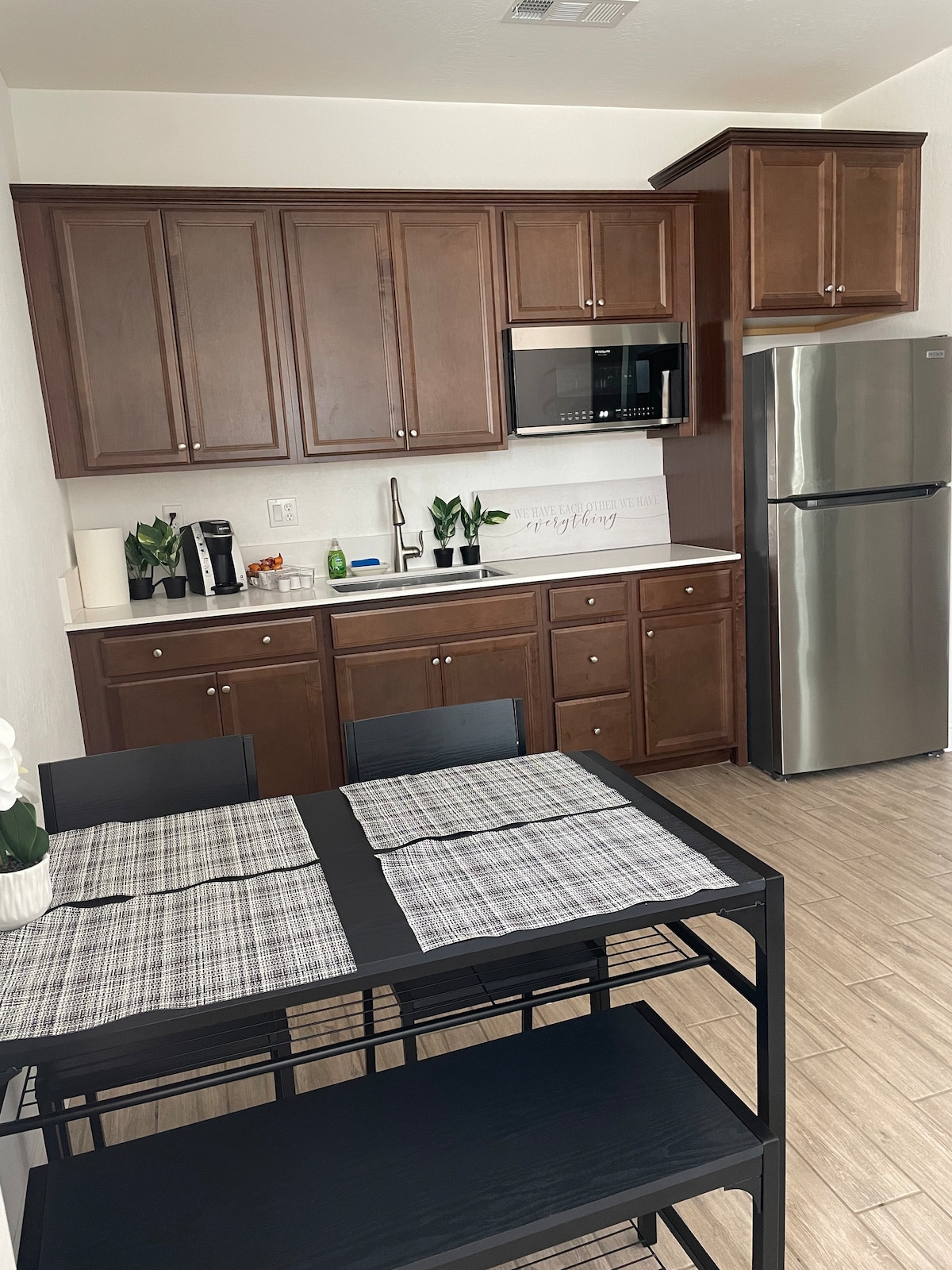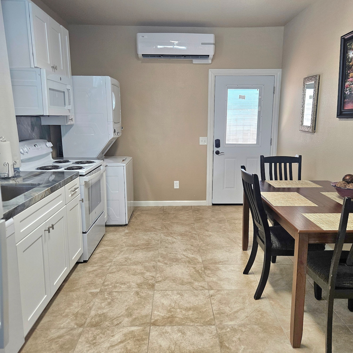 You are booking for 1 BEDROOM ONLY (1-2 guests ONLY) This is a new modern style home with 1 bedroom, a private entrance, 1 restroom/shower and a small kitchen. Our neighbor is very safe and quiet. The rental is a house within a house, but blocked by a locked door for your privacy. Small Kitchen has: -Microwave -Mini Fridge -Coffee Maker -Toaster -Kettle DOES NOT include: washer/dryer or stove/oven 2 Bedroom option available for this same guesthouse, different listing under my name
