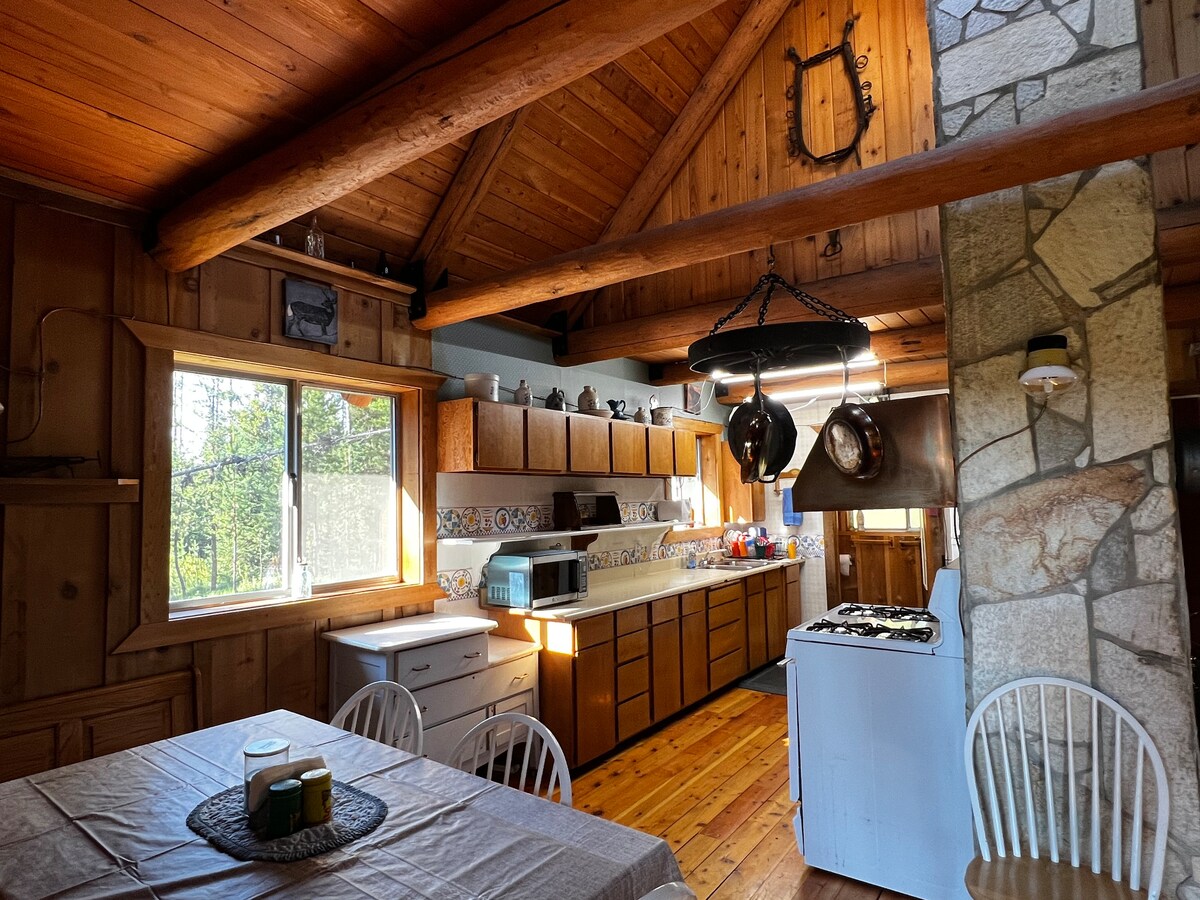 Vistas espetaculares e observação de vida selvagem incrível! Bela casa de madeira de 2000 pés quadrados aquecida durante todo o ano. Confortavelmente mobiliado com TV Dish e Internet de banda larga ilimitada. Muito privado em 30 acres com calçada fora da estrada e 2 milhas da cidade. Onde a vida desacelera. Sinta o cheiro dos pinheiros, adormeça com a chuva no telhado de metal, acorde com alces no prado. Ótima varanda para assistir ao nascer e pôr do sol. Grande anel de fogueira. Muito espaço para todos! Cães são bem-vindos com taxa de limpeza de US$ 50.