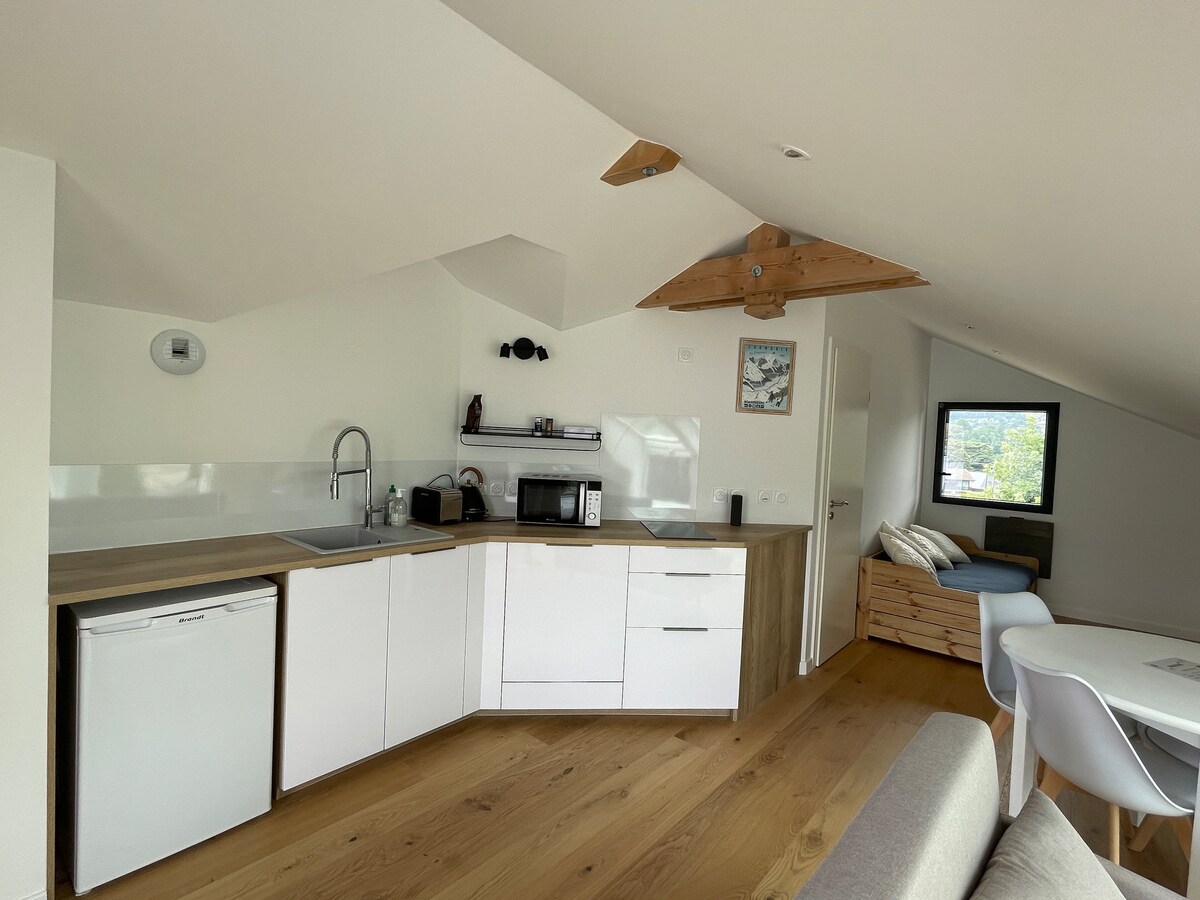 Grande estúdio de 32 m² no andar térreo da casa dos proprietários. Entrada independente, tranquilidade garantida pelo ambiente rural (a casa está de frente para os campos), vista muito agradável para a montanha Semnoz (local famoso para os parapentistas que podem ser vistos passando sobre a casa, já que uma área de pouso está localizada a 300 m). Este estúdio totalmente equipado, com cozinha integrada e banheiro com chuveiro, foi totalmente reformado em 2016. É perfeito para 2 ou 3 (1 casal com 1 criança)