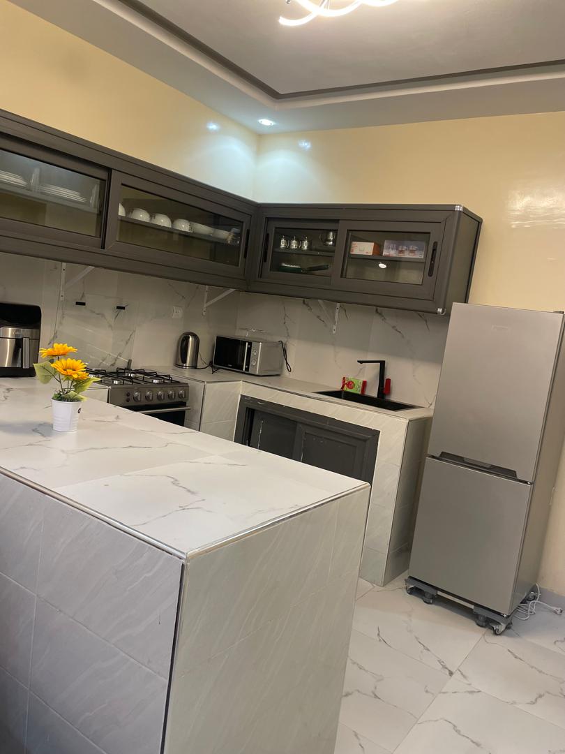 Acomodação de 2 quartos, sala de estar, 2 banheiros, cozinha com internet de fibra, TV (Netflix, bônus e todos os canais ). Tranquilo e elegante localizado no distrito de Point E na Rue A. Muito acessível, Supermercado, farmácia, restaurantes ...