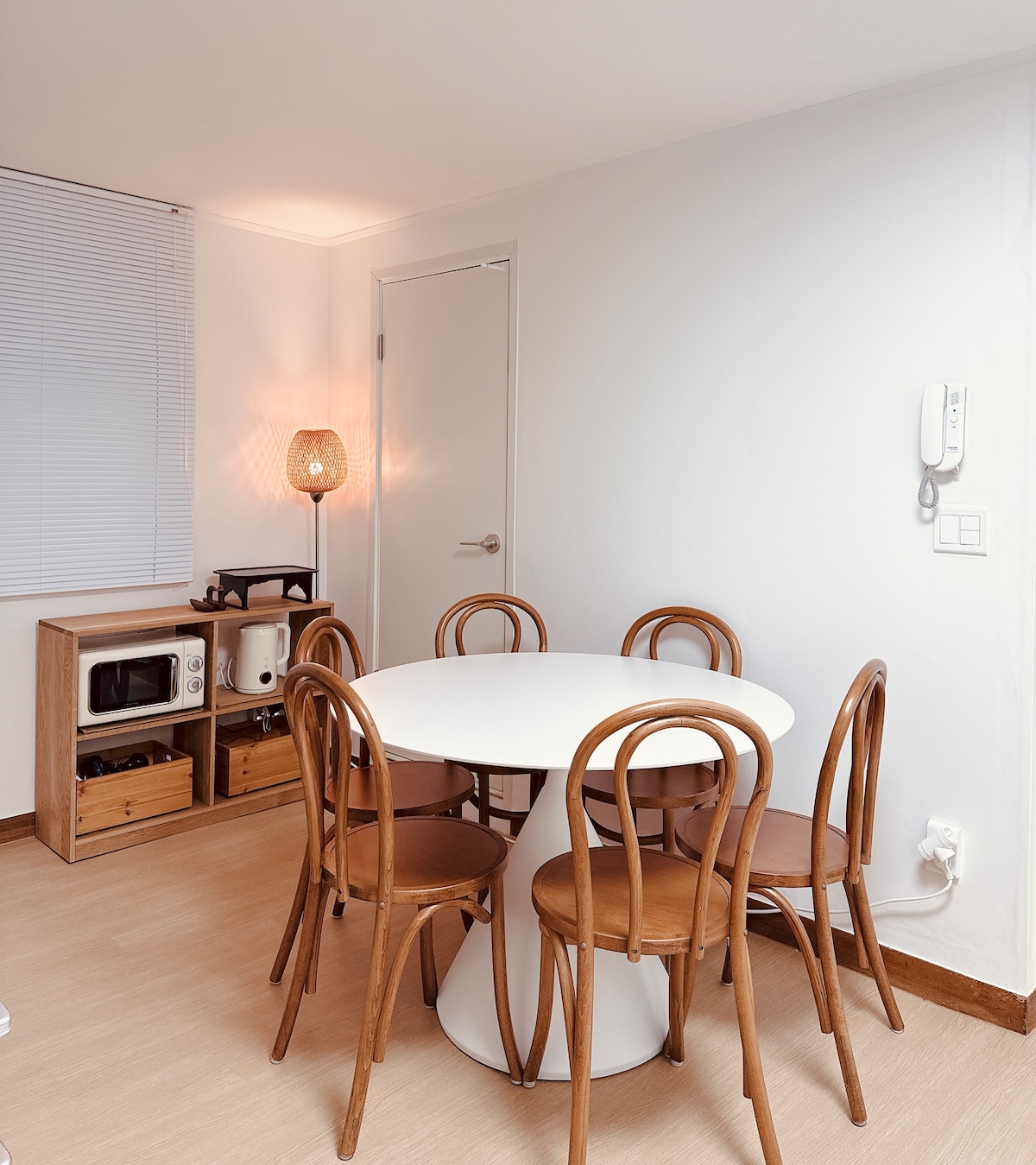 É um espaço de sensação calorosa com tons de madeira e branco. Proporcionarei a você um dia confortável no centro da cidade. Descanse. Localizado em frente ao Centro de Convenções de Suwon a 4 minutos da loja Galeria, A 10 minutos da estação Gwanggyo Jungang. Parque do Lago Gwanggyo, rua das cafeterias, Elyway, etc. Há uma variedade de coisas para ver e fazer. Diversos restaurantes, Starbucks, Olive Young, lavanderia, Kyobo Book Center, lojas de conveniência, salão de beleza, etc. estão localizados dentro do edifício.