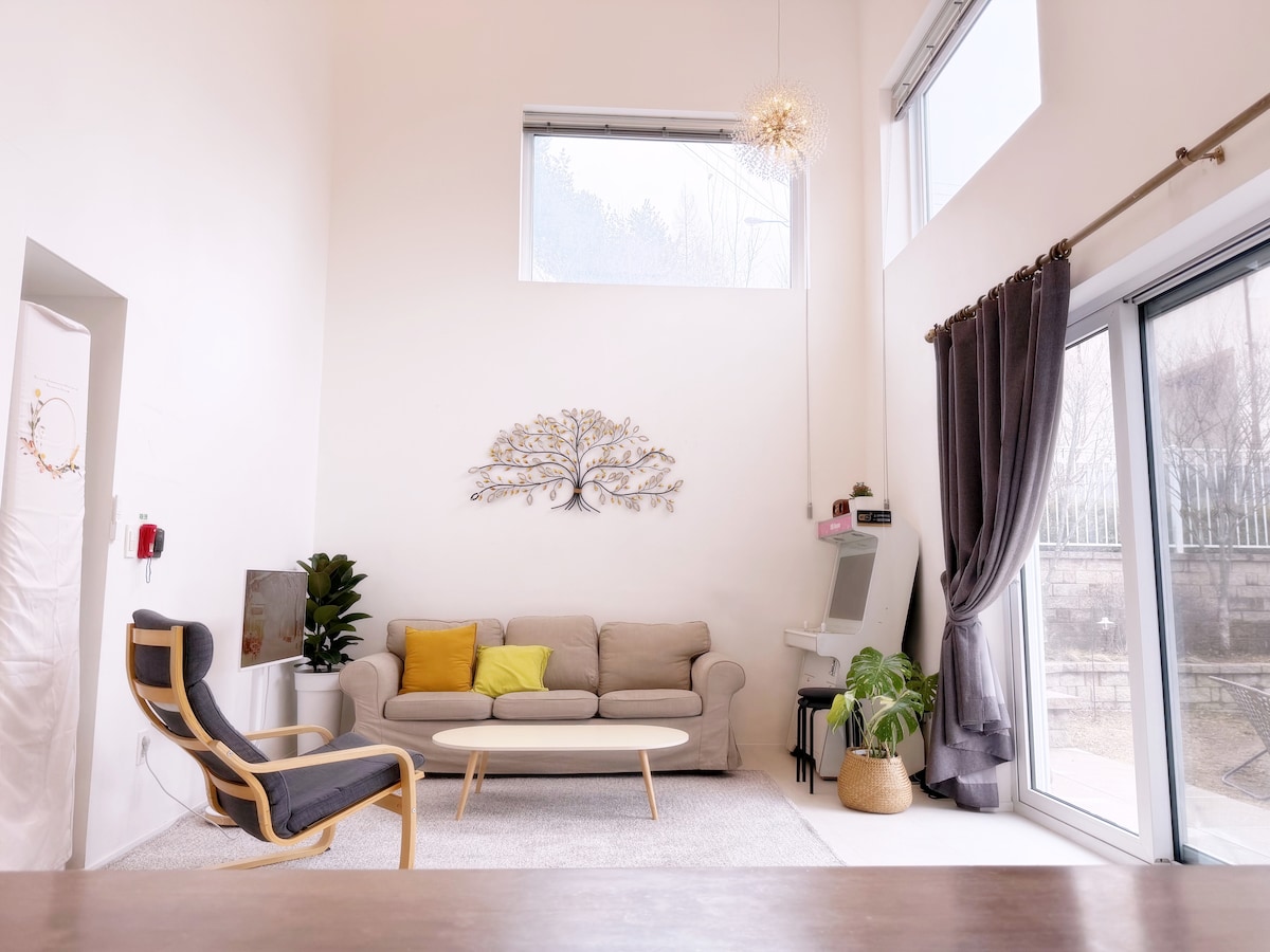 Retiro privado espaçoso aninhado na natureza serena de Gapyeong, oferecendo o cenário perfeito para momentos inesquecíveis. Você vai acordar com a luz do sol quente e terminar o dia sob um céu repleto de estrelas. Com mais de 165 metros quadrados de espaço interno e mais de 1.300 metros quadrados ao ar livre, é perfeitamente adequado para viagens em família, encontros com amigos e oficinas. Comodidades cuidadosamente projetadas e uma hospitalidade acolhedora esperam por você, tornando seu tempo com os entes queridos ainda mais significativo e agradável.