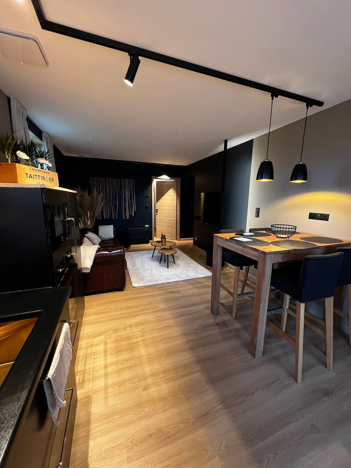 Localizado a 10 minutos de Reims, nosso apartamento é composto por uma grande sala de estar com cozinha equipada, sala de jantar, sala de estar com sofá-cama, TV (tela plana) e Wi-Fi. Um quarto equipado com uma cama de 160 x 200 e um banheiro com vaso sanitário separado. Além disso, você tem estacionamento seguro (para carro e bicicleta) dentro da nossa propriedade. Por razões de saúde e alergias, nossos amigos animais de estimação não são aceitos nesta acomodação.