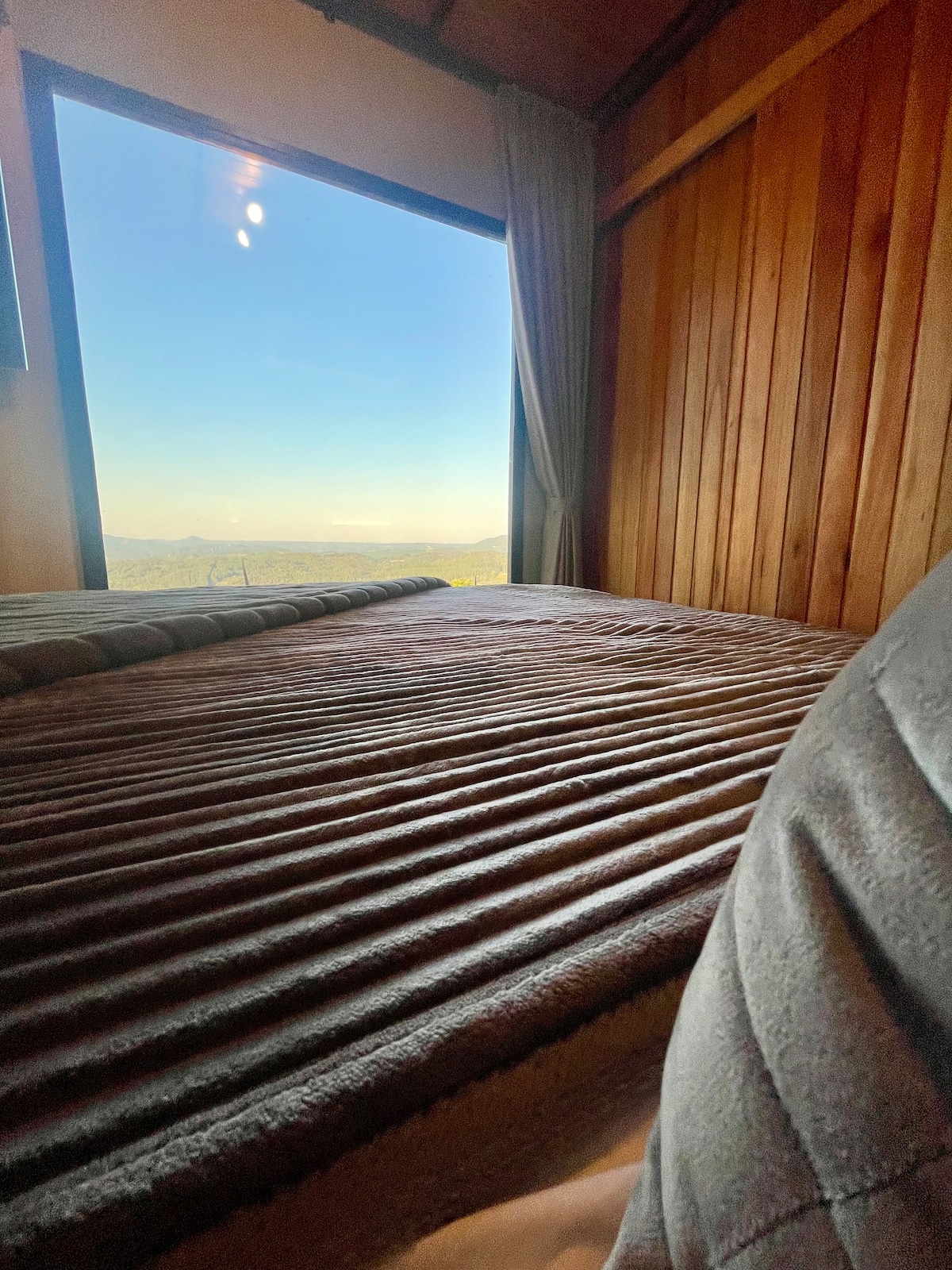 Refúgio exclusivo a apenas 32 km de Curitiba, a Cabana Luz do Poente é o destino ideal para quem busca conforto e conexão com a natureza. Com design moderno, e uma vista de tirar o fôlego, é perfeita para descanso e trabalho remoto. • Vista panorâmica • Wi-Fi Starlink (ideal para home office) • 2 quartos confortáveis • Cozinha completa • Decoração charmosa e aconchegante • Total privacidade em meio a natureza O ambiente é perfeito para casais, famílias ou amigos, com conforto e segurança