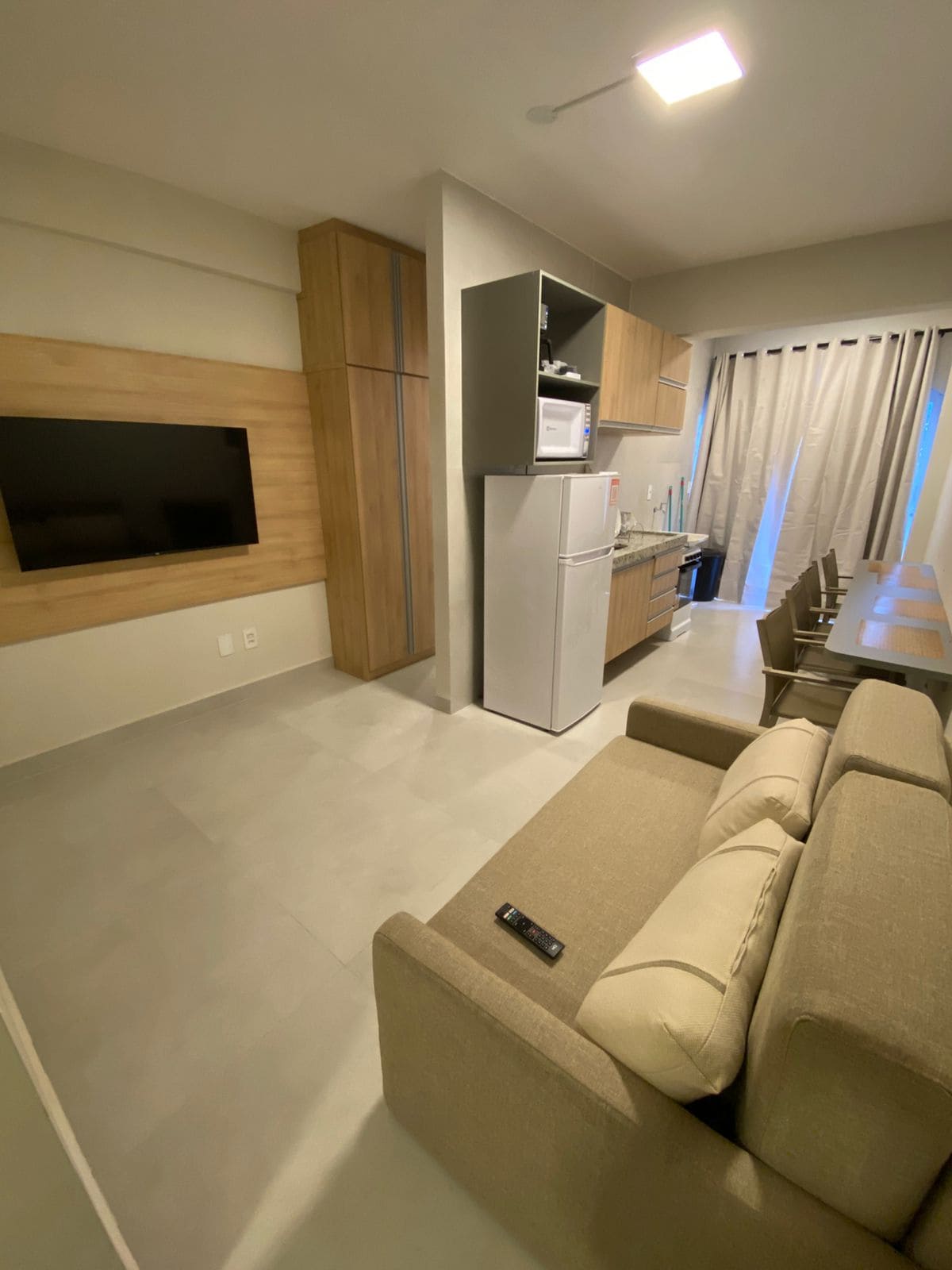 Apartamento central, vista de frente a avenida principal da cidade, com bares e restaurantes. Tudo novo para esperar seus hóspedes.