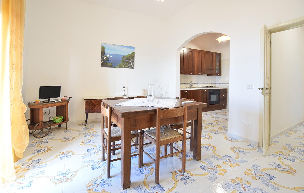 A 1 km de Santa Maria, no meio da mata mediterrânea, está situado um apartamento com banheiro, cozinha americana e entrada independente no primeiro andar de uma casa (sem elevador). A praia pode ser alcançada com uma descida de 250m. O estúdio tem uma vista fabulosa sobre o mar de Santa Maria di Castellabate e está equipado com ar condicionado quente e frio, TV, Wi-Fi e uma cozinha funcional com panelas, louças, pratos, talheres, copos, etc.