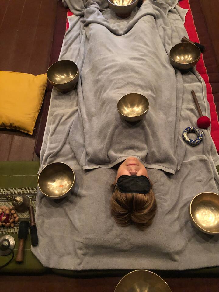 Banho sonoro com cura energética usando instrumentos de cura: tigelas do Himalaia, sinos, cálices. Tigelas colocadas perto do corpo e usadas diretamente sobre ou perto do corpo para efeitos de cura vibracional. Na minha localização, você estará cercado por tigelas de canto. Entre em contato comigo se quiser que eu viaje até você. Para grupos de mais de 15 pessoas, deve ser capaz de atendê-lo em sua localização.